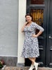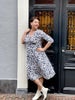 Deze jurk is er ook in een oranje/bruine kleurstelling op lichte ondergrond.