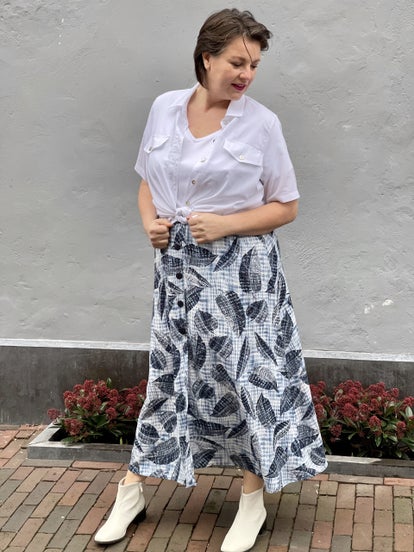 We hebben deze rok in deze kortere uitvoering tot op de knie en ook een wat langere versie tot onder de kuit.